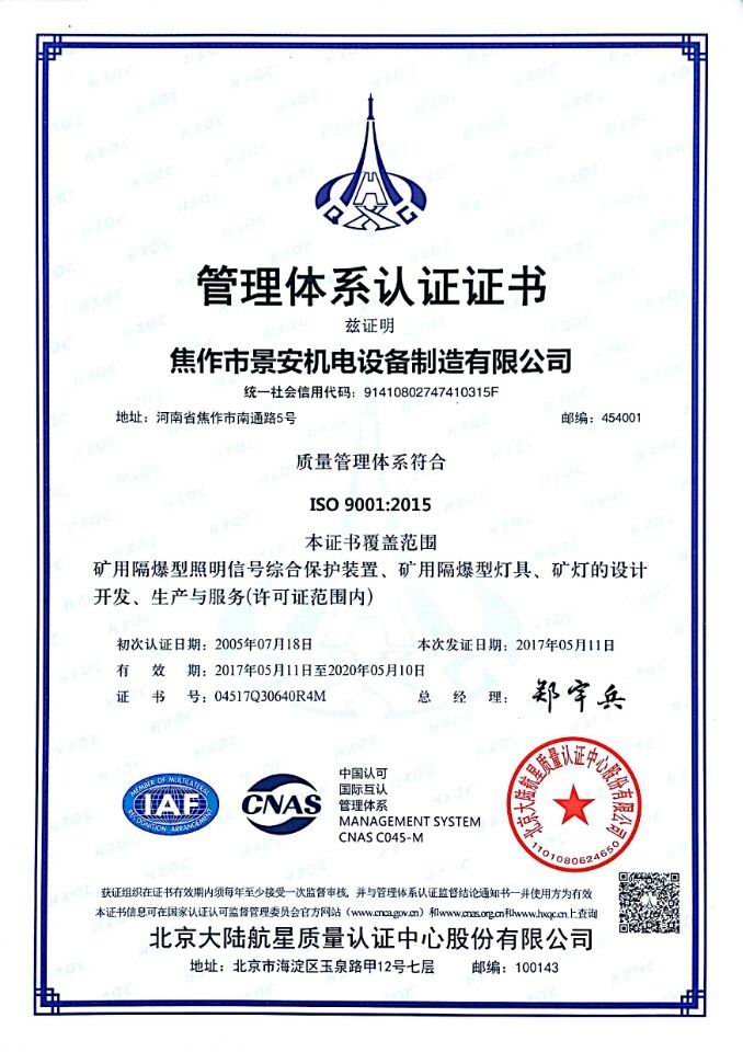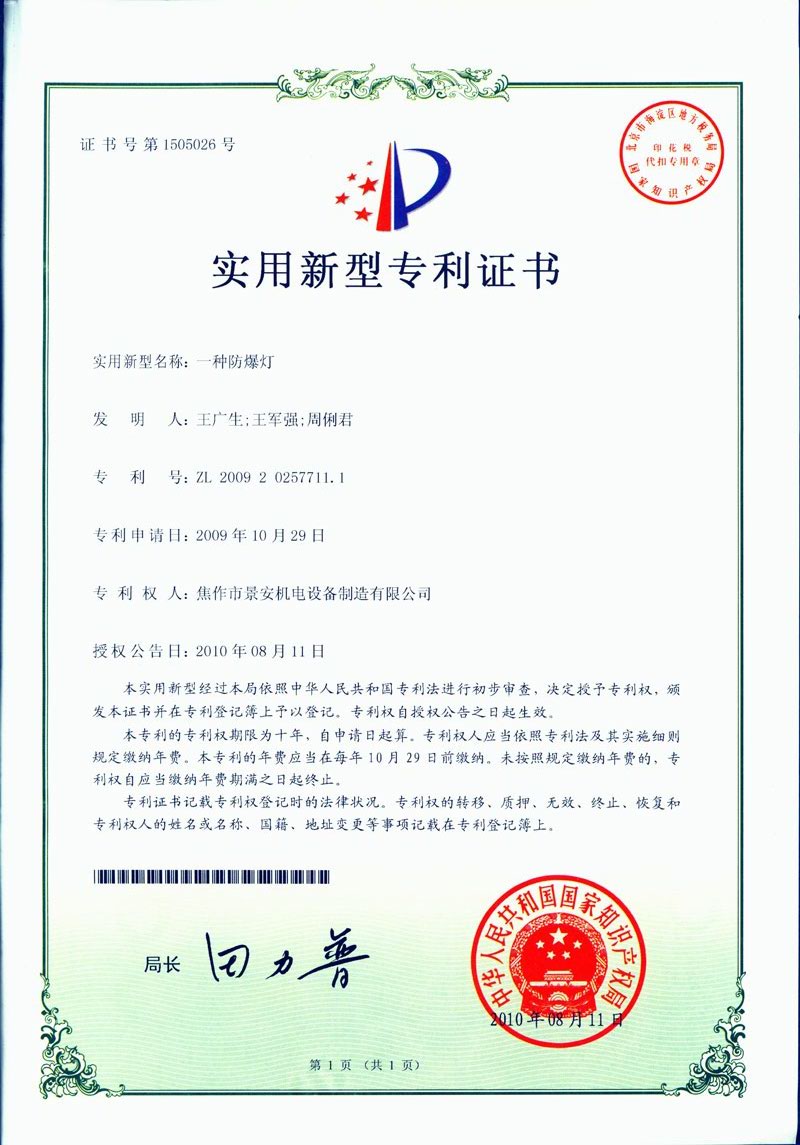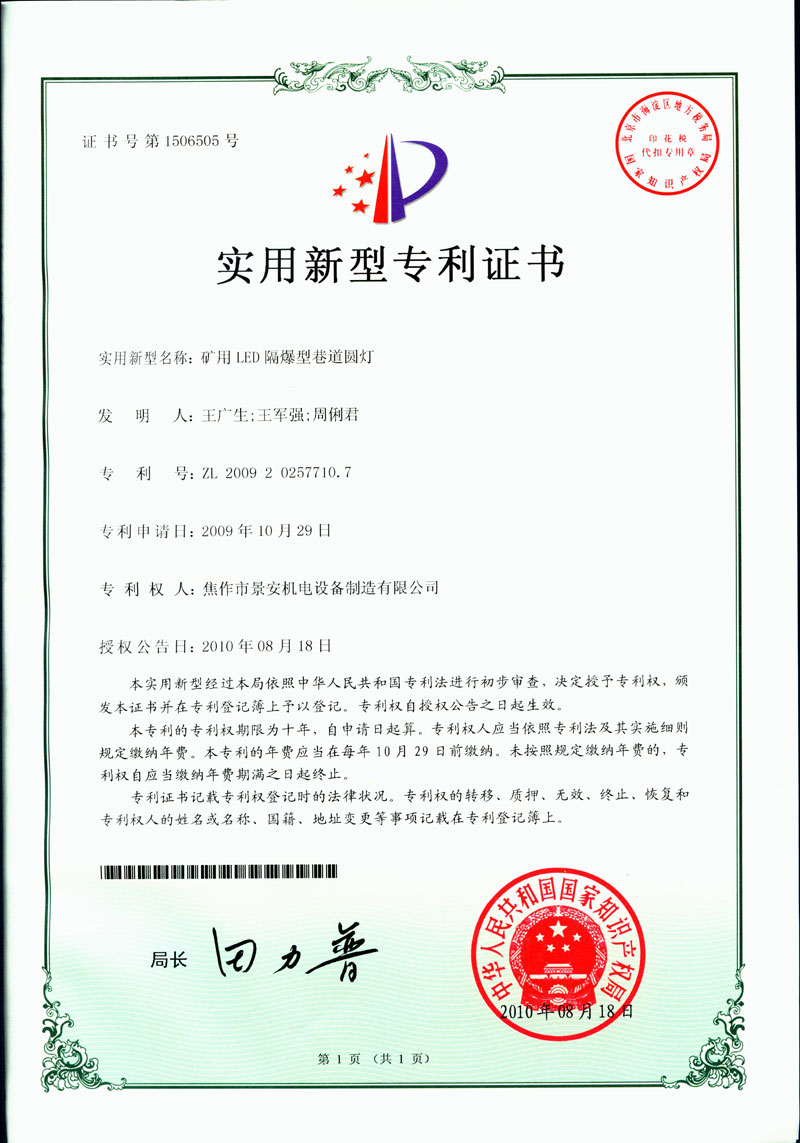 焦作景安公司始終堅持“以科技為先導,以市場為導向”的發(fā)展戰(zhàn)略,不斷進行新產(chǎn)品的研制和開發(fā),在國家“六五”到“九五”期間,承擔和參與了國家多項科技攻關(guān)項目。并被中國電器工業(yè)協(xié)會評定為“質(zhì)量可信產(chǎn)品”。特別是在礦用防爆燈領域,礦用隔爆型半導體(LED)照明燈具,2008年列入國家火炬計劃,獲2009年河南省工業(yè)和信息化廳的科技成果二等獎,并擁有多項國家專利。 |